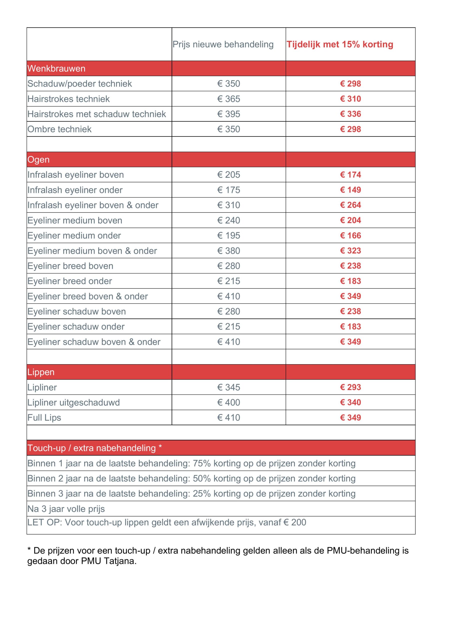 Een nieuwe behandeling is inclusief één gratis nabehandeling binnen 6-8 weken (indien nodig).